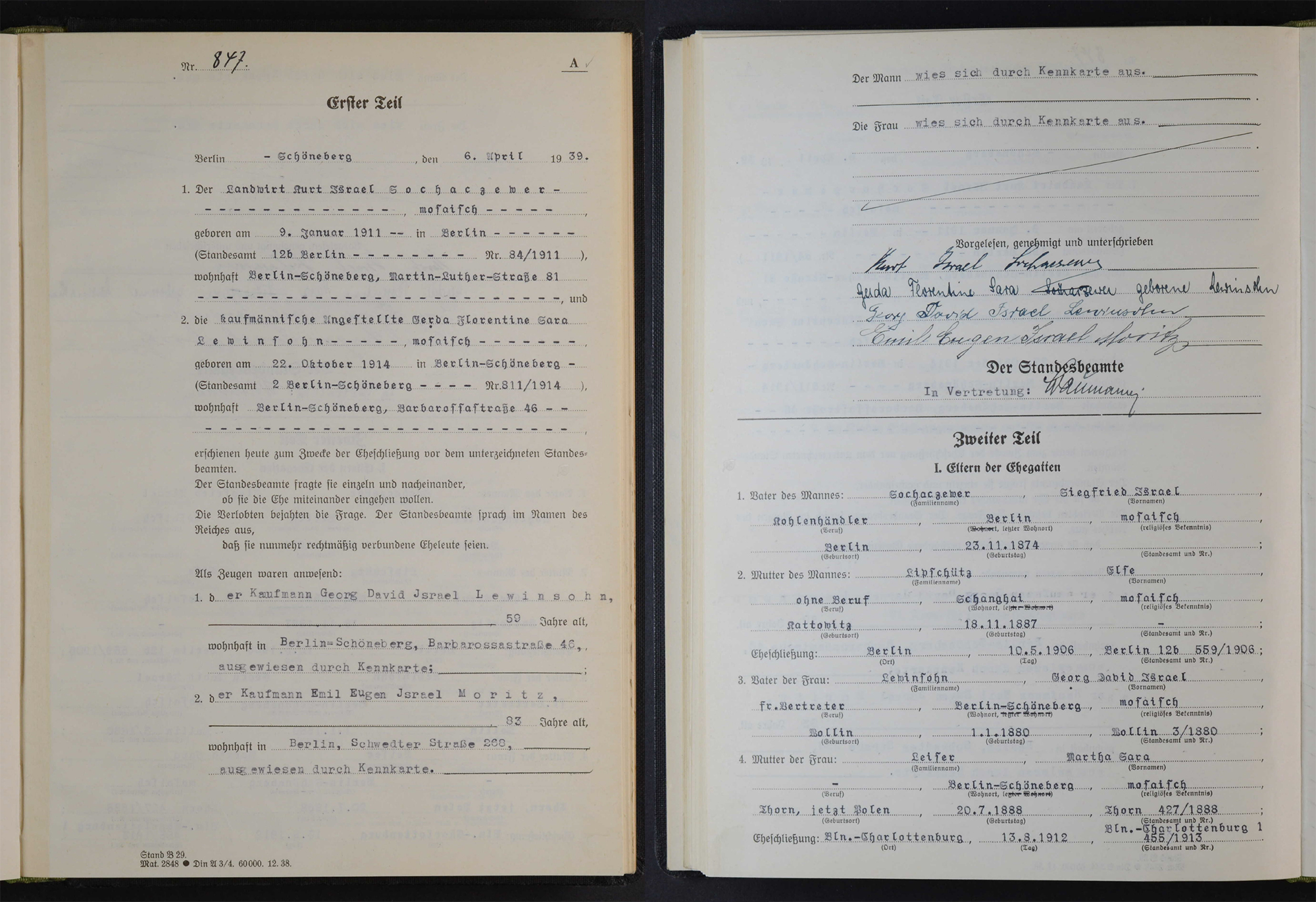 - 6.4.1939: heiratet Gerda Lewinsohn in Berlin